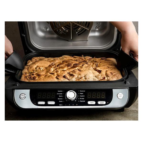Два устройства в одном, гриль+аэрогриль. вместительный, но компактный. В комплекте есть все необходимые формы, решетки, и даже прихватки, щипцы, щетка