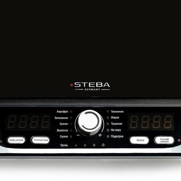 Отзывы оставляю редко, но тут не удержалась. Особенно, когда есть с чем сравнивать. В далекие времена был тот самый известный стеклянный аэрогриль с верхним поднимающимся теном, надо сказать, что отлично готовил, но моя новая Штебочка (домашние только так теперь называют) гораздо круче. Дома еще живет электрический чайник Steba, уже 7-й год, и еще возможно столько же проживет (ттт). Нежно люблю данного производителя. Прелюдия закончилась. А теперь начинается самый что ни на есть любовный акт. Несмотря на то, что при доставке коробка показалась очень большой и появились сомнения, удастся его ли разместить на моей небольшой кухне, по факту достаточно компактный: 40 см ширина, 40 см глубина, при открывании крышки самая верхняя точка 47 см. Шнур, кому интересно, примерно 80 см. Первое, что захотелось приготовить конечно же курицу. 1.5 кг курица отлично поместилась на половине противня. На второй половине планировались овощи. К сожалению, в инструкции не указано время приготовления продуктов, поэтому, опираясь на жизненный опыт и интуицию, включила режим "запекание" на 30 мин. Идеально! Она полностью была готова, сочная, мягкая, с чудесной корочкой.... мммм, просто шедевр! Обычно в духовке уходил час на приговление. Крышку в процессе можно спокойно приподнимать, программа останавливается, при закрывании крышки, продолжает свою работу с того места, как остановилась. Овощам хватило 3 мин на аэрогриле до состояния al dente. Итого, 33 мин на целый ужин. В качестве эксперимента, омлет на завтрак в режиме "аэрофри" 15 мин. Пришлось использовать свой керамический противень. Омлет получился плотным, дырчатым, с небольшим вкусом дымка. Очень вкусный. Опять же, против 35 мин в духовке. Ребенок не удержался, решил испечь шарлотку, но т.к. выбрал рецепт в интернете для приготовления в духовке, не угадал со временем, 40 мин на выпечке, шарлотка подгорела сверху чуть чуть, пришлось посыпать сахарной пудрой)). И конечно же мясо.. стейки свиной шейки, в маринад окунули и 15 мин на режим