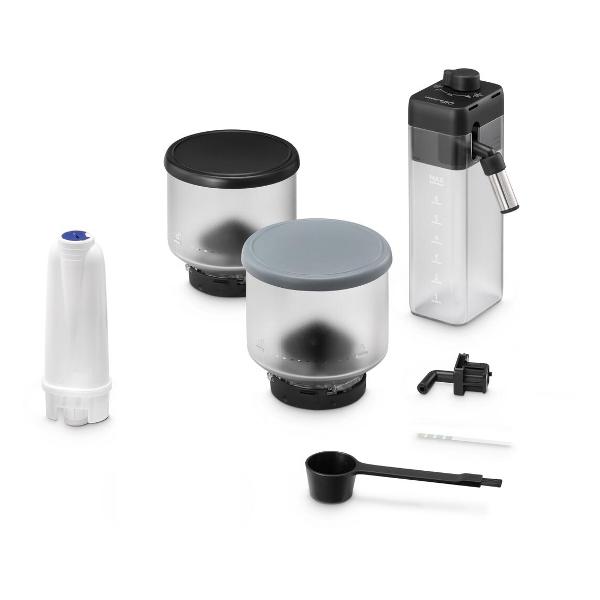 | Особенности | Предварительное смачивание кофе, Приготовления кипяток, Автоматический капучинатор, Cъемный молока резервуар, Степени помола регулировка, Противокапельная система, Самоочистки функция, Регулировка кофе температуры, Регулировка кофе крепости, Возможность приготовления 2 чашек, Регулировка порции воды, Выбор 1 или 2 порции кофе, Самоочистки капучинатор, Автоматический промывки режим, Автоматическое выключение, Cъемный воды резервуар, Готовности к работе индикация, Работы режима индикация, Отсутствия воды индикация, Отсутствия кофе индикация, Индикация отсутствия капельного лотка, Индикация необходимости для очистки, Капельного лотка заполнения индикация, Отходов отсека заполнения индикация, Таймер, Сенсорная управления панель, Подсветка управления кнопок, Встроенная кофемолка, Cъемный контейнер для использованного кофе, Cъемный капельный лоток, Воды фильтр, Энергосбережения режим |