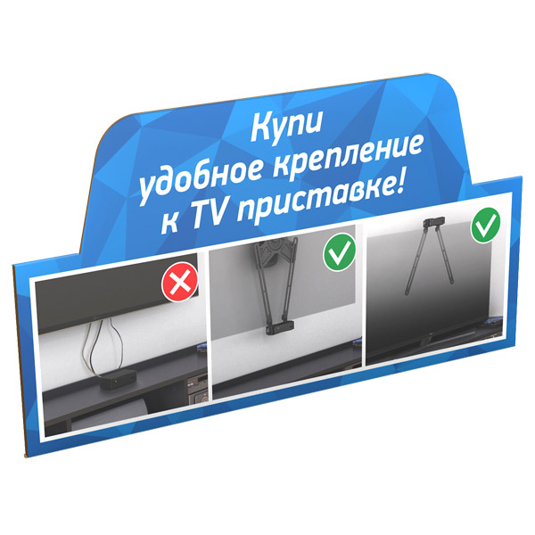 Купил уже два таких, первое уже три года служит. Приставку можно закрепить как под телевизором, так и над ним.