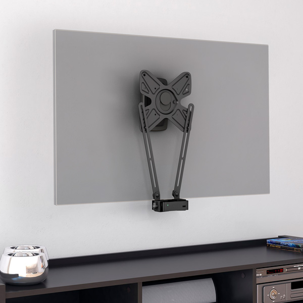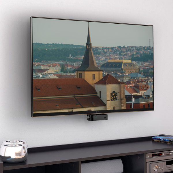Хорошая альтернатива полочкам для телевизионных приставок. В отличие от полочек, с помощью этого кронштейна можно разместить приставку и над телевизором, и под ним.