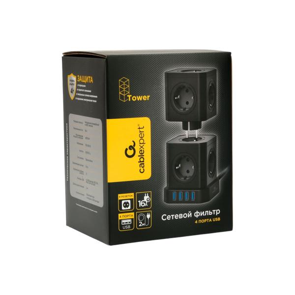 Кабеля управление Cablexpert Tower 9r 16a 4husb 3 1a 2m Ur Zaschity 4 Blackyj Korobka Twr 9 U4 B 2