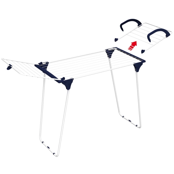 Напольная сушилка для белья с оптимальной рабочей поверхностью, подходящей для большого количества одежды. Основание и перекладины, изготовленные из стали, обеспечивают модели надежность и долговечность.