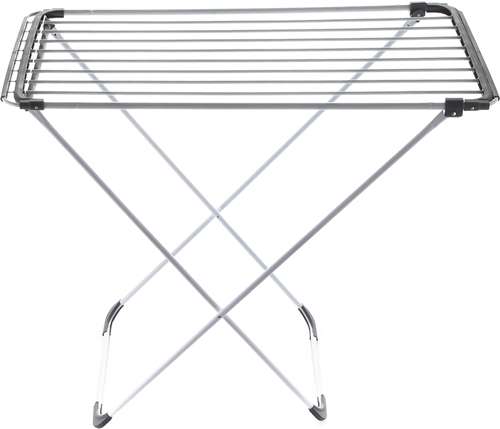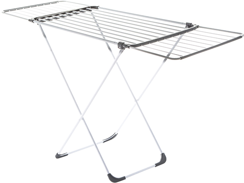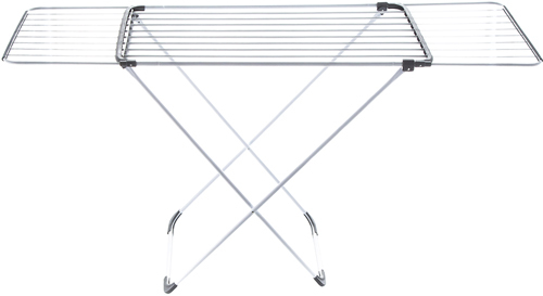 Удобная и устойчивая сушилка. Телескопические боковины. Диаметр прутков хороший. Не опрокидывается с загруженой боковиной и свободной второй боковиной. Пластиковые ножки.