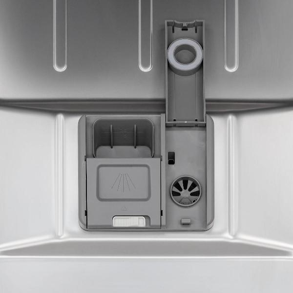 Звуковой сигнал окончания хода программы, есть индикаторы наличия соли и ополаскивателя. Отличное внутреннее освещение. Удобная регулировка корзины для посуды по высоте. Дополнительная сушка Extra Drying, усиленный цикл Power Wash, ускорение цикла Express Wash.