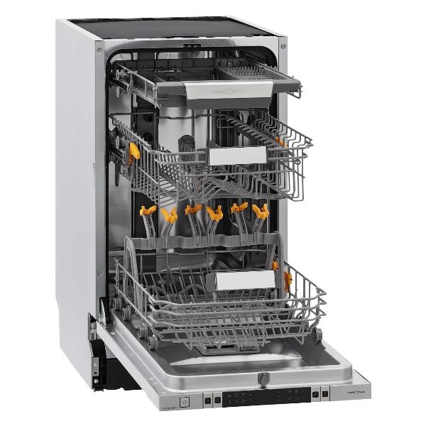 Моя помощница, я её теперь только так называю, тона существенно облегчила мою жизнь. Работает идеально, главное, что посуду отмывает отлично, экономит существенно воду и электроэнергию. Хотя она и узенькая всего 45 см, но при этом очень вместительная, это особенно важно для семейства из трёх человек. Всё отмывается одновременно: и сковородки и тарелки. Дополнительная сушка, усиленный цикл, ускорение цикла. Машинку советую к приобретению, не пожалеете.