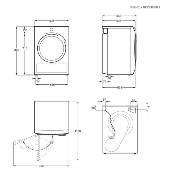 | Особенности | Внутреннее освещение, Встроенный теплообменник, Сушильная шерсть, Пуховые изделия, Спорт, Смешанные ткани, Таймер, Выключения звуковой сигнал, Звуковой сигнал, Дисплея подсветка, Перенавешиваемые дверцы, Установки на стиральная машина |