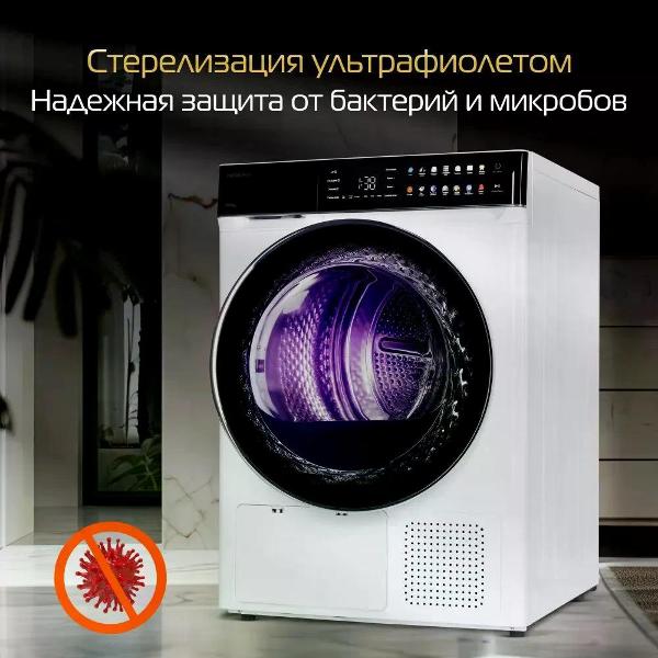 | Особенности | Внутреннее освещение, Встроенный теплообменник, Бережная сушка, Ускоренная сушка, Пуховые изделия, Смешанные ткани, Таймер, Звуковой сигнал, Дисплея подсветка, Установки на стиральная машина |