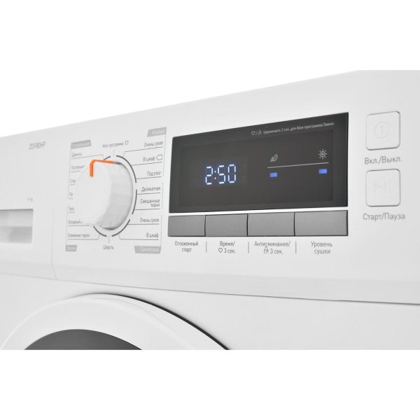 | Особенности | Встроенный теплообменник, Сушильная шерсть, Джинсы, Дополнительная сушка, Холодный воздушный обдув, Спорт, Смешанные ткани, Освежить (пар), Таймер, Выключения звуковой сигнал, Звуковой сигнал, Установки на стиральная машина |