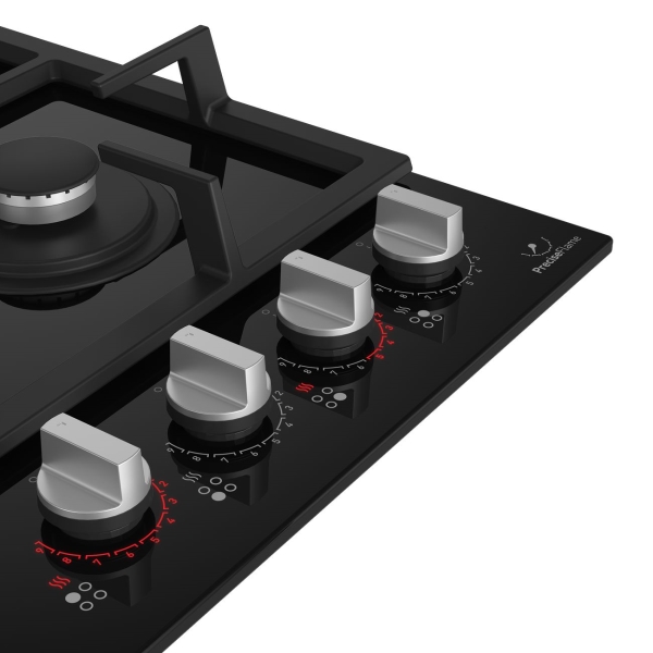 Хорошая газовая панель, достаточно мощная, без проблем управляется с помощью поворотных ручек. Имеется встроенный автоматический электроподжиг, а также ступенчатая регулировка огня. Поверхность прочная, сделана из закаленного стекла, которое не боится загрязнений.