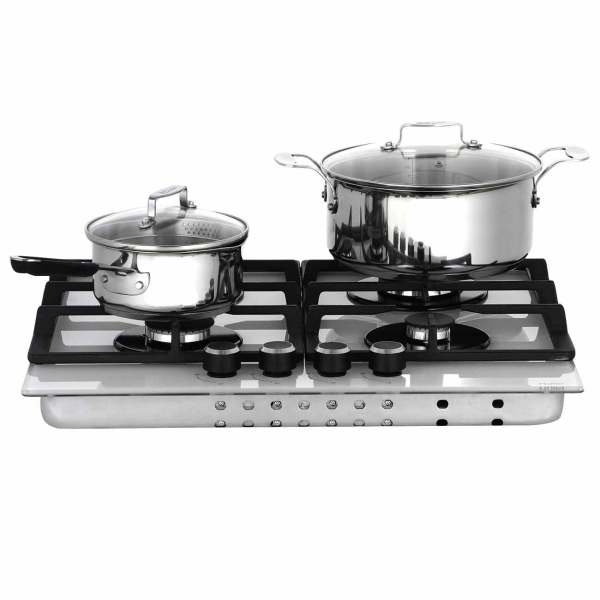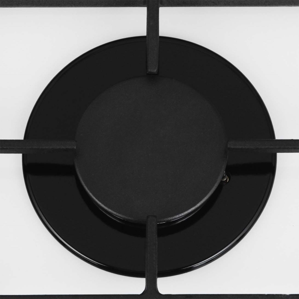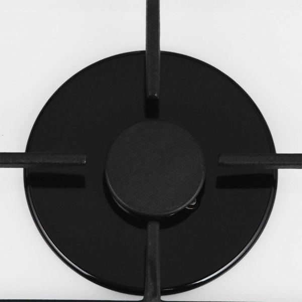 Варочная панель из закаленного стекла. Прочные чугунные решетки. Оснащена электроподжигом и газ-контролем. Очень удобное расположение конфорок.