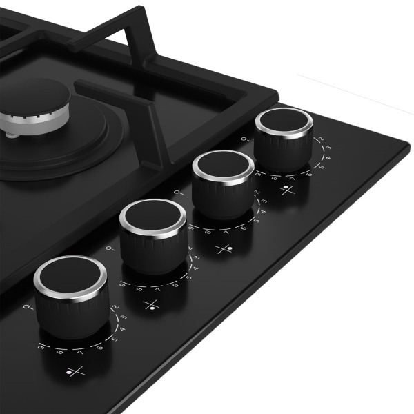 Классная газовая панель, сразу же привлекла мое внимание. Современный дизайн, прочная поверхность из закаленного стекла и удобные чугунные решетки. Имеется газконтроль - все безопасно. Также для удобства есть автоматический электроподжиг и возможность поддерживать минимальный огонь.