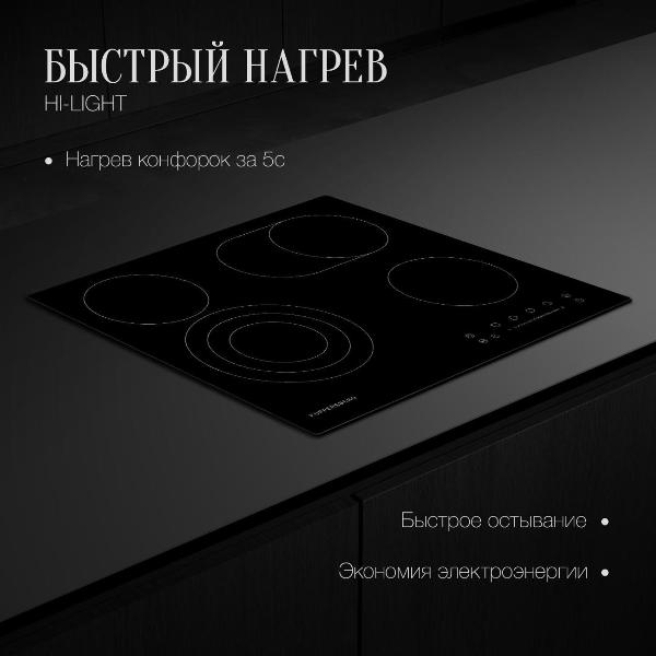 Хорошая варочная панель, очень довольны покупкой! Нагрев конфорок действительно быстрый, буквально за пару секунд уже чувствуется тепло, что значительно экономит время при готовке. Особенно удобно, что конфорки разного диаметра - можно подобрать посуду любого размера, от маленькой турки до большой сковороды. Стеклокерамика очень качественная, гладкая и ровная, моется легко, никаких разводов не остается.Управление добное, особенно порадовала функция Stop&Go, когда нужно отойти, можно поставить на паузу и потом продолжить готовку с тех же настроек. Доставили быстро