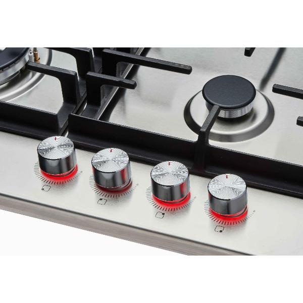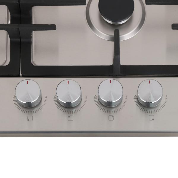 Я привыкла готовить на газу, поэтому смотрели только газовые панели. Этот вариант оказался самым простым и надежным. Когда меньше наворотов, техника лучше работает и дольше. Здесь есть 4 конфорки, которые хорошо работают. И выглядит панель аккуратно. Это все, что нужно. Кроме того, в этой технике подумали про безопасность, потому что с газом шутки плохи.