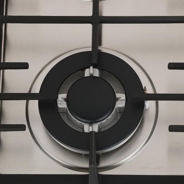 Прибор подключили к газовому баллону в дачном доме. Выглядит элегантно, и расстояние между конфорками не маленькое: можно на две соседние ставить большие кастрюли. Удобно, что переключатели с индикаторами работы располагаются рядом. Эмалированное покрытие мою после готовки, чтобы выглядело так же симпатично. Бесспорный плюс — конфорка ВОК, благодаря которой можно быстро сделать стейки или попробовать новый азиатский рецепт.