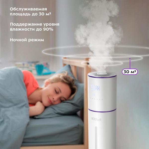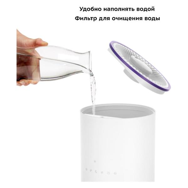 Увлажнитель понравился. Внешне дизайн выглядит прекрасно, аппарат массивный, выбрасывает пар на приличную высоту. Также регулируется интенсивность подачи пара (3 режима) и направление выброса пара на 360 градусов. В комплекте пульт управления, с помощью которого можно дистанционно управлять многими необходимыми функциями. Опасался, что заявленный производителем максимальный уровень шума в 50 дБ будет очень слышно при работе, но увлажнитель сам по себе тихий.