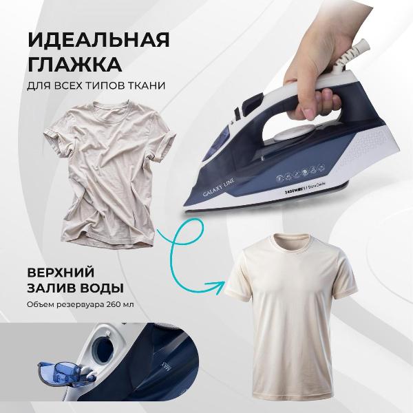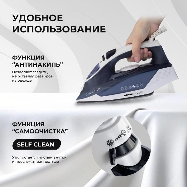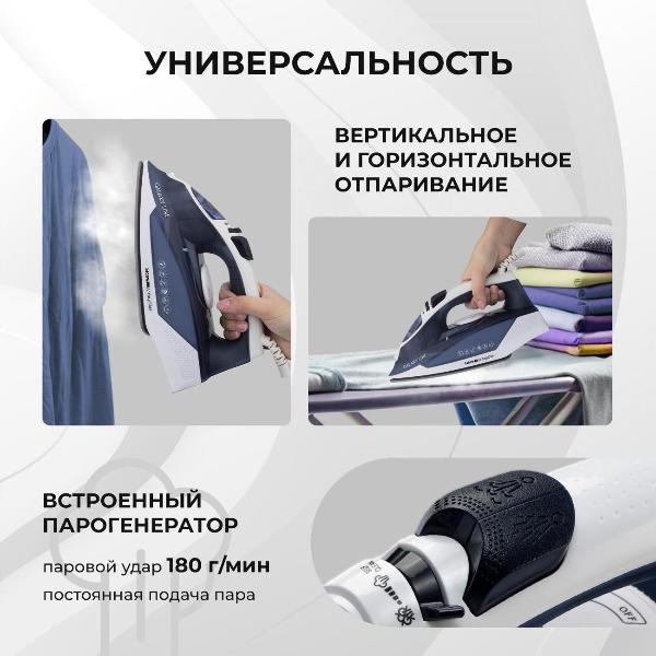 | Особенности | Автоматическое выключение, Воды распылитель, Добавление воды во время глажки, Звуковой сигнал |