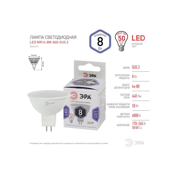 Характеристики Era Mr16 8w 860 Gu5 3 Diod Sofit 8vt Holodnyj Gu5 3 10 100 4200 B0049071