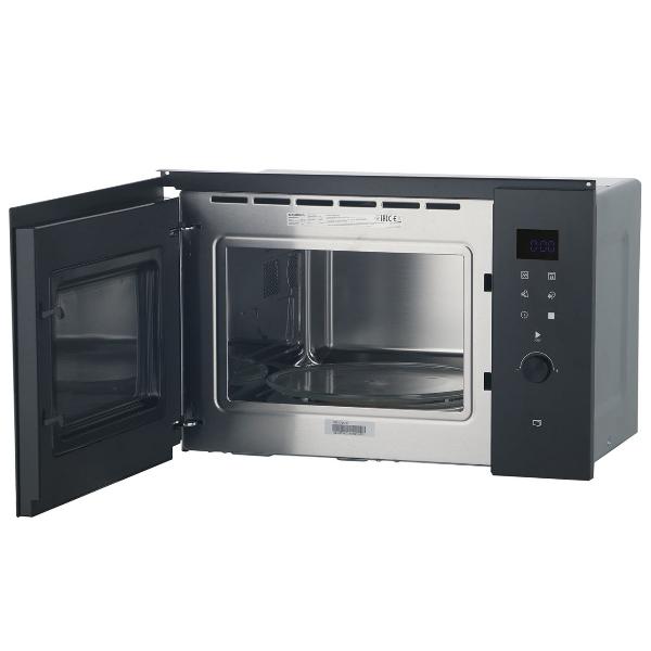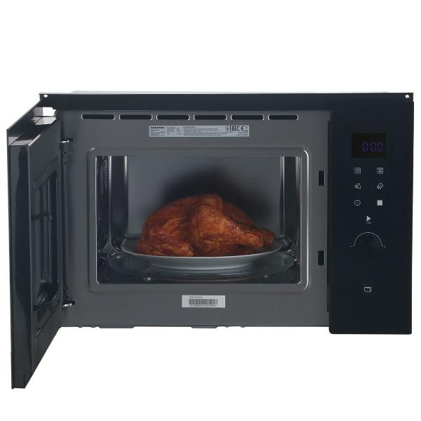 Встраиваемая модель прекрасно вписалась в новую кухню. Лаконичный стиль в сочетании в многофункциональностью. Ёмкость в 25 л вмещает большую мясную тарелку. Из 5 ступеней мощности в основном пользуюсь тремя. 8 разнообразных программ. Мощный гриль в 1000 вт позволяет быстро приготовить блюдо. На цифровом дисплее отображена информация, удобное сенсорное управление со звуковой индикацией.