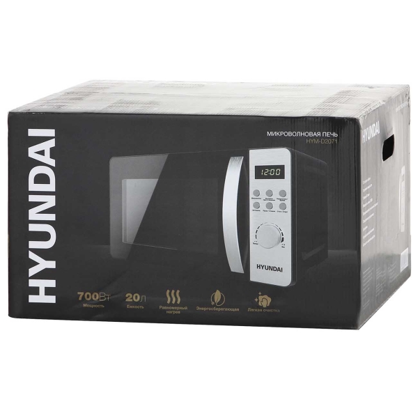 Купил, пользуюсь месяц и ни о чем не жалею- мощность одинаковая у большинства микроволновок данной ценовой категории, но в микроволновой печи соло Hyundai HYM-D2071 Silver привлек дизайн, а оказалось еще и греет равномерно и быстро.