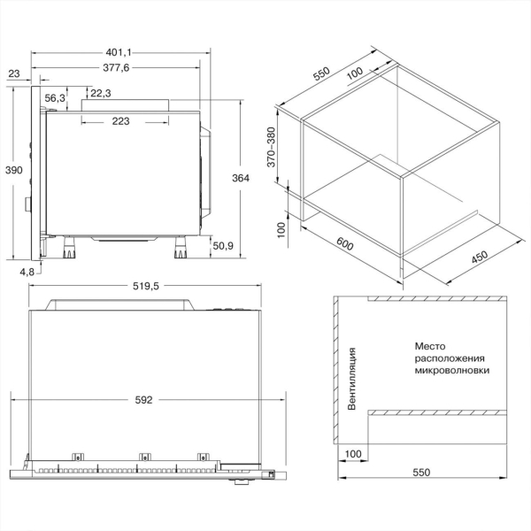 Вилка не разъемная (или провод сам), если кухня собрана и пенал (шкаф) нельзя подвинуться, то придется розетку делать внутри ящика где микроволновка. Длина 1 метр. Но провод качественный термостойкий матовый материал.