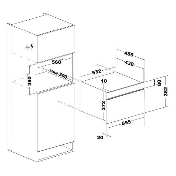 Дверца открывается как у духовки, что удобно, когда микроволновка встроена ближе к стене.