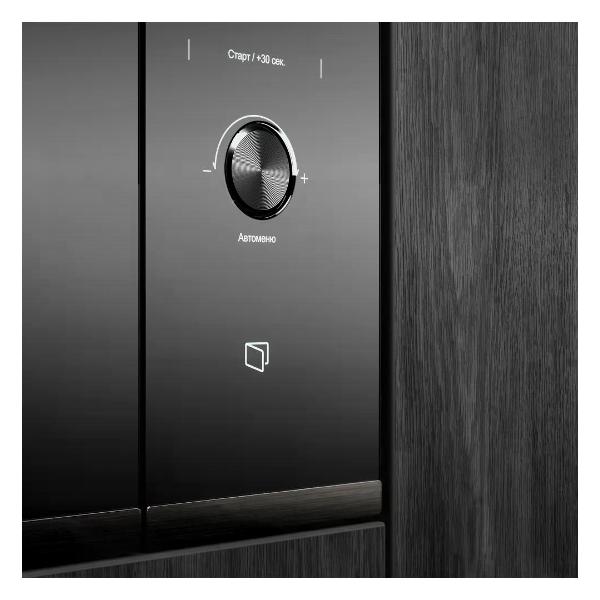 Стеклянный фасад. Давно подбирали такую микроволновую печь без рамки. Сенсорная кнопка открывания. Большой объём. Считаю данная микроволновая печь отлично сочетается с духовым шкафом этой фирмы.