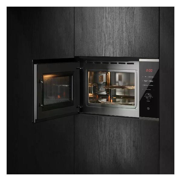 Очень красивая микроволновка, идеально сочетается с духовкой по дизайну. Рамки нет по этому внешний вид идеальный. Камера из нержавейки, очень быстро греет. Порадовало, что дверь можно открывать как с кнопки, так и руками.