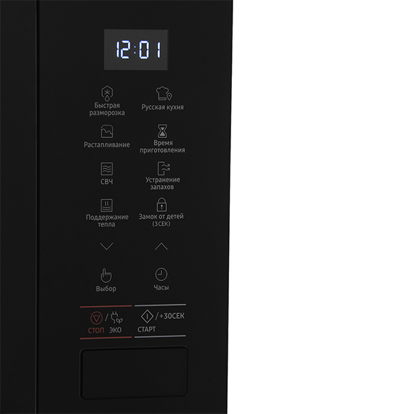 Самсунговскую микроволновку взяли не только из-за дизайна, но ещё из-за простой системы управления. Хотя поначалу мне казалось, что на сенсорной панели чересчур много кнопок. Но сейчас нужные параметры выставляю на интуитивном уровне чуть ли не с закрытыми глазами. На цифровом дисплее видно, сколько времени осталось до окончания нагрева. Очень удобно.