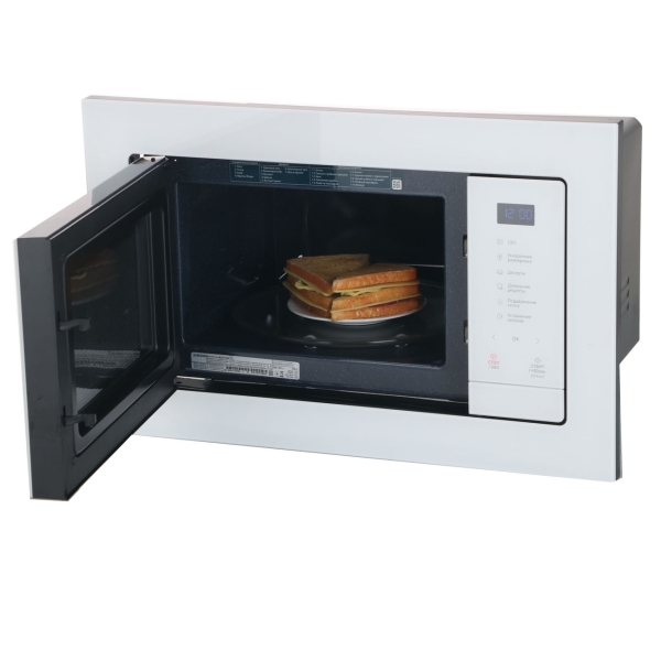 Микроволновку для кухонного гарнитура выбрал у Samsung, лично меня не раз производитель не подвёл с техникой, собрана очень качество. Надёжность в каждой детали. Управляю при помощи сенсорной панели, легким движением запускаю пищу, греет шустро и четенько.