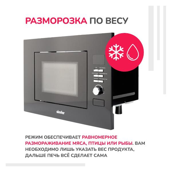 Во ремня ремонта на кухне решили практически всю технику сделать встраиваемой. Для этого цели приобрели данную микроволновую печь. Смогли без проблем её установить, отлично вписалась в интерьер. Также все домашние заценили её мощную и качественную работу. Греет еду, а не тарелку. Мне понравилась её бережная разморозка продуктов, применяю часто.