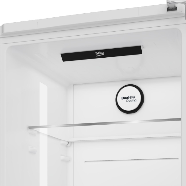 В высоту 201 метр, высокий и за этот счет мало места занимает в ширь. В общем, система не просто выглядит красиво, но ещё и действительно работают все функции как писали на сайте Беко. При объеме на 403 литра и со своими настройками, потребляет он по электричеству мало. Относится к классу А+. Есть полка для бутылок, была в комплекте и легко ставится, очень удобная.