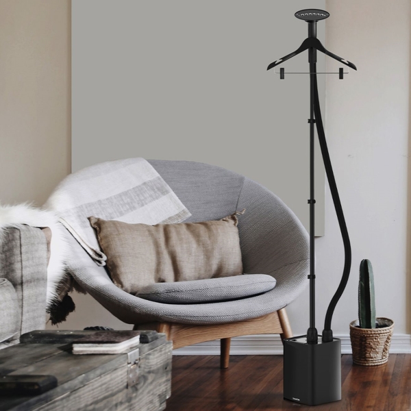 Модель напольного типа мощностью 1800 Вт, изготовленная из пластика, устойчивого к различным воздействиям. Для подачи пара используется телескопическая стойка, а также шланг длиной 1,58 м. Прибор функционирует от сети. Для подключения есть 2-метровый шнур.